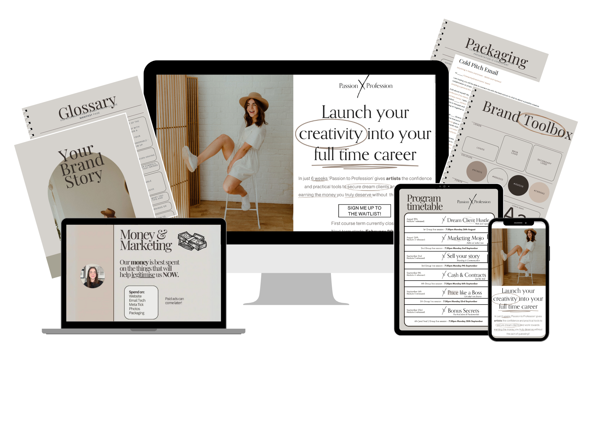 Over 6 weeks, I’ll give you the exact tools, strategies, and honest lessons that helped me turn my creative passion into a full-time profession - so you can stop wasting energy on trial and error, start charging what you’re worth, and get real, paying clients who actually value your work